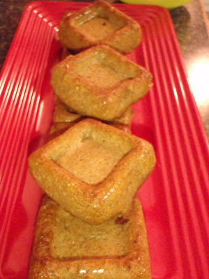 Thankful to have found a version of this recipe at Elana's Pantry I revised it to my liking. I found hers to be a bit too sweet, so I added another egg and a bit more pumpkin. She has so many wonderfully delicious yet healthy recipes on her blog. I am soooo thankful to have found her website! Her info links are very helpful resources as well.